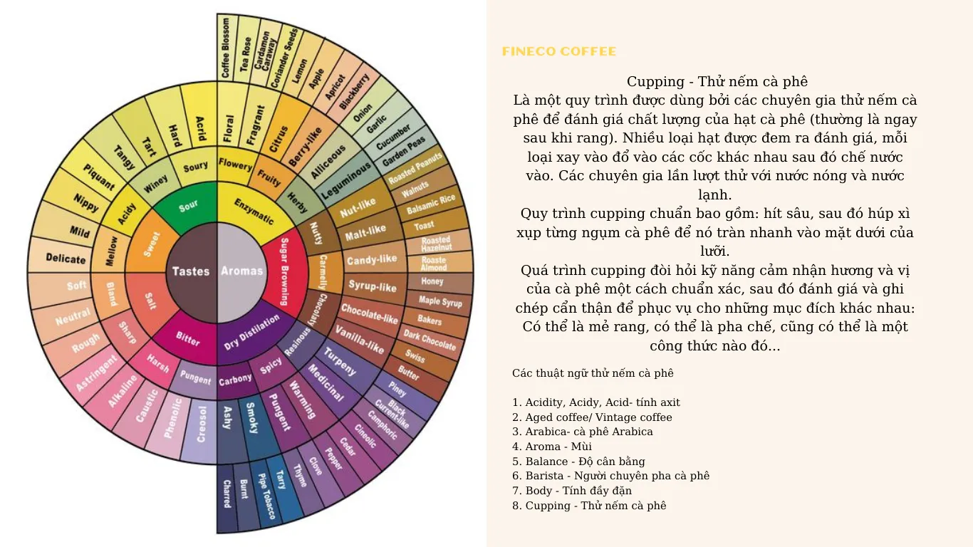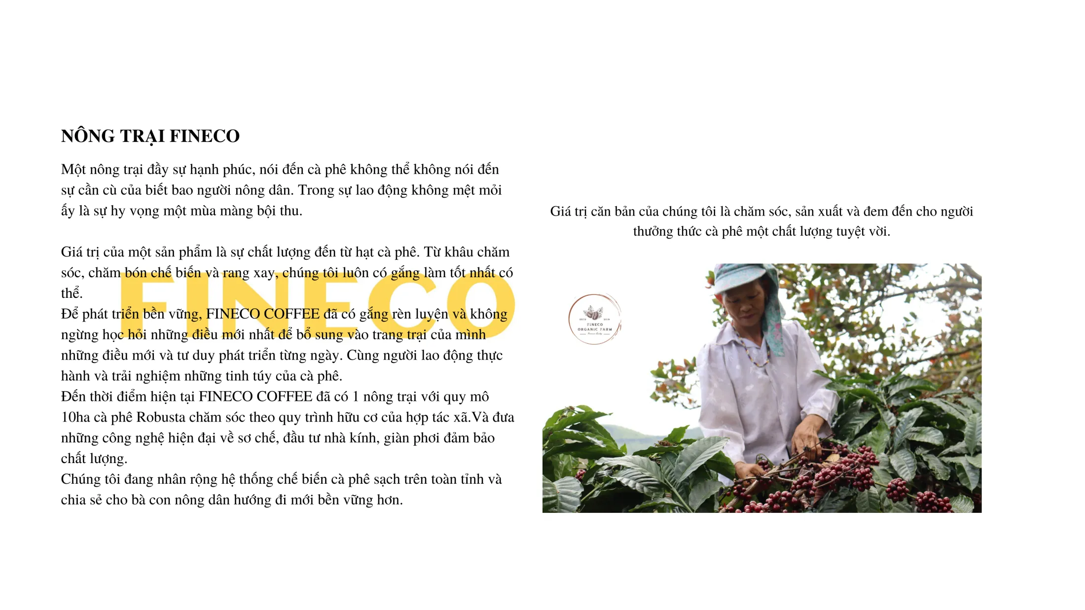 Từng dòng sản phẩm của FINECO luôn được thử nếm một các bài bản để đáp ứng được nhưng tiêu chuẩn khắt khe của thị trường với mong muốn khách hàng được thưởng thức những ly cà phê trọn vẹn theo tiêu chuẩn của thế giới.