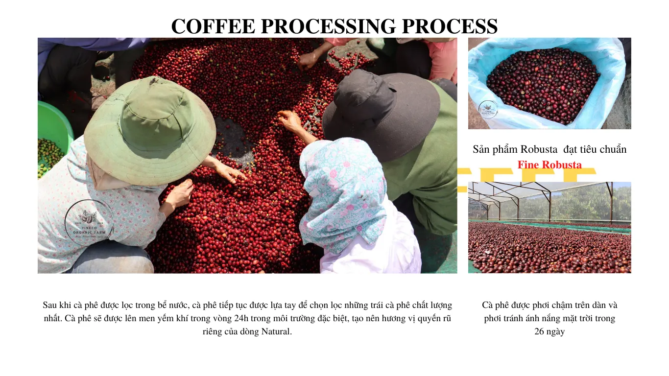 KHÁI NIỆM VỀ CÀ PHÊ ĐẶC SẢN: Cà phê được tuyển chọn từ 100% trái cà phê Robusta chín, lên men tự nhiên và phơi trên sàn. Theo hiệp hội cà phê đặc sản thế giới (SCA) thì Cà phê được gọi là Fine Robusta khi thỏa mãn những yêu cầu khắt khe về hương và vị đạt điểm số thử nếm tù 80/100 điểm trở lên bởi các chuyên gia giàu kinh nghiệm về cà phê.