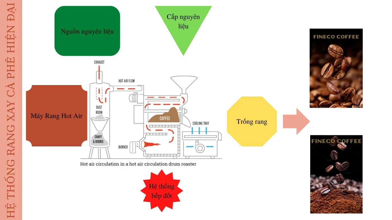 Cà phê được rang bằng máy rang Hotair đảm bảo cà phê chín từ trong ra ngoài